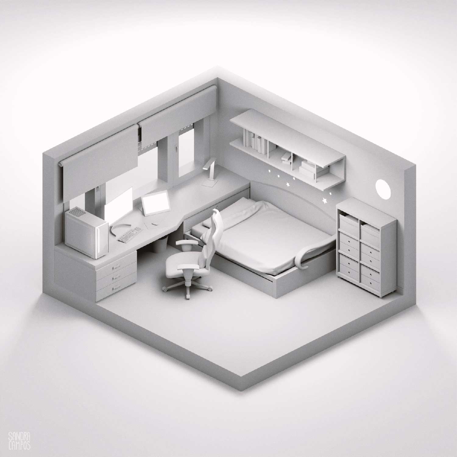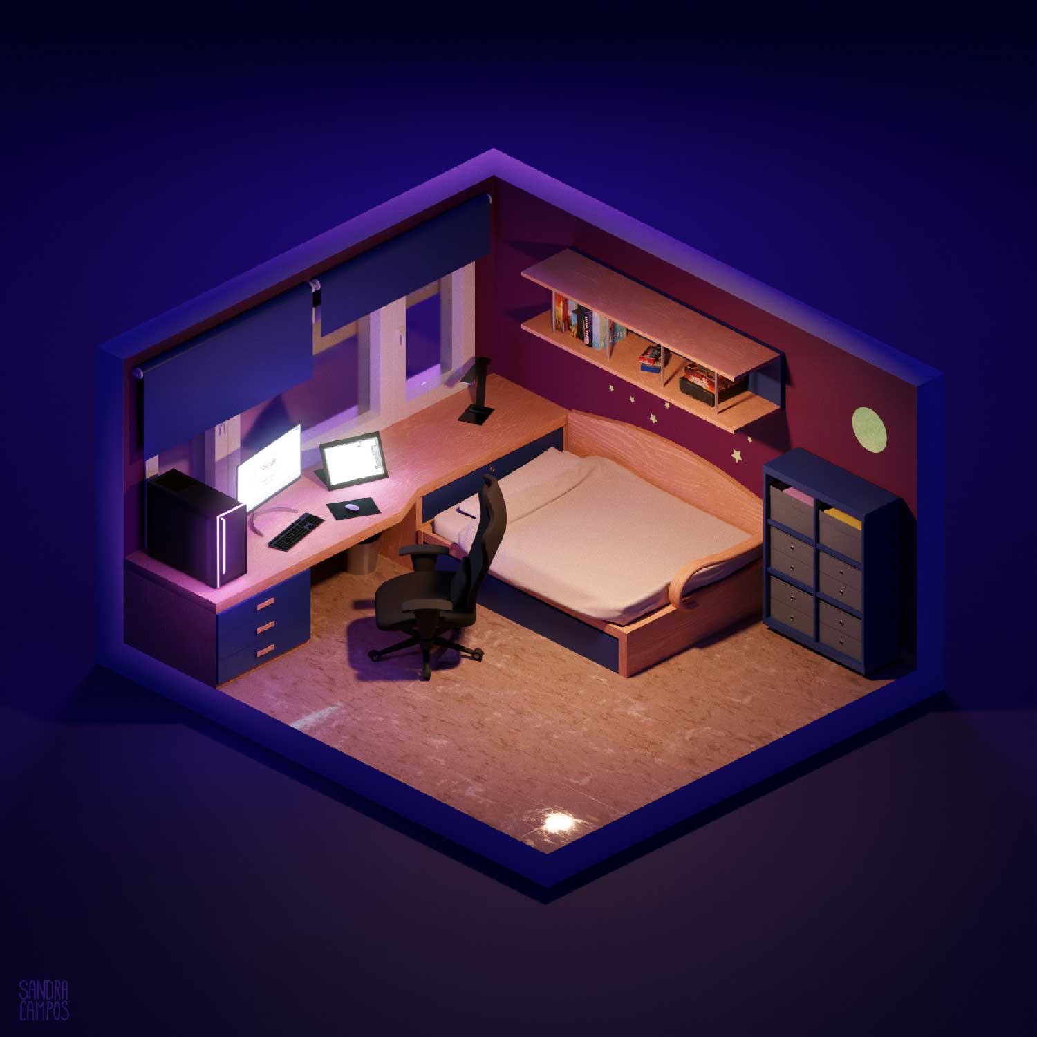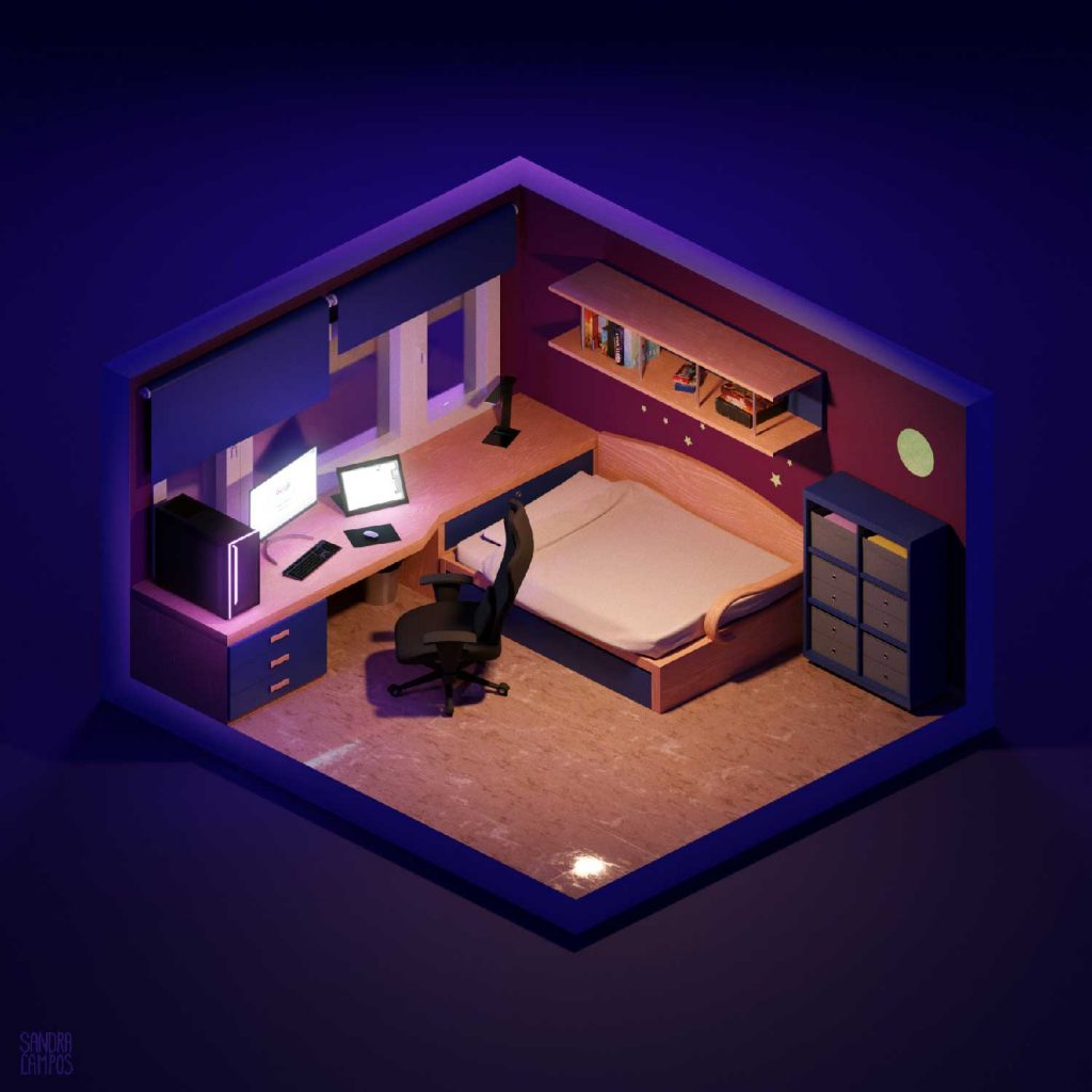 A stylized model based on my room. Made with Blender.